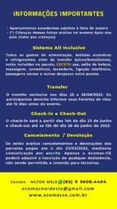 Agradeço aos que já estão com reservas confirmadas e aguardo os demais.